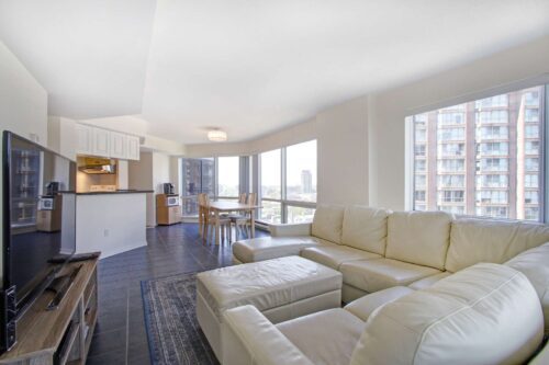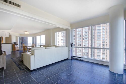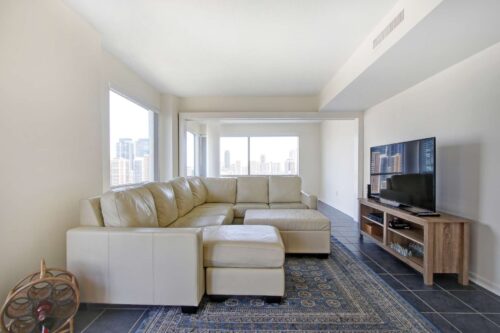 Welcome to 1001 Bay Condo! This is not your typical 2-bed, 2-bath condo. This expansive corner suite offers over 1,127 square feet of thoughtfully designed living space, wrapped in iconic city views and flooded with natural light through wall-to-wall, floor-to-ceiling windows.
