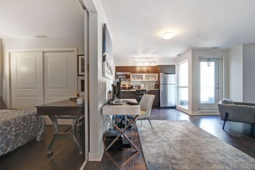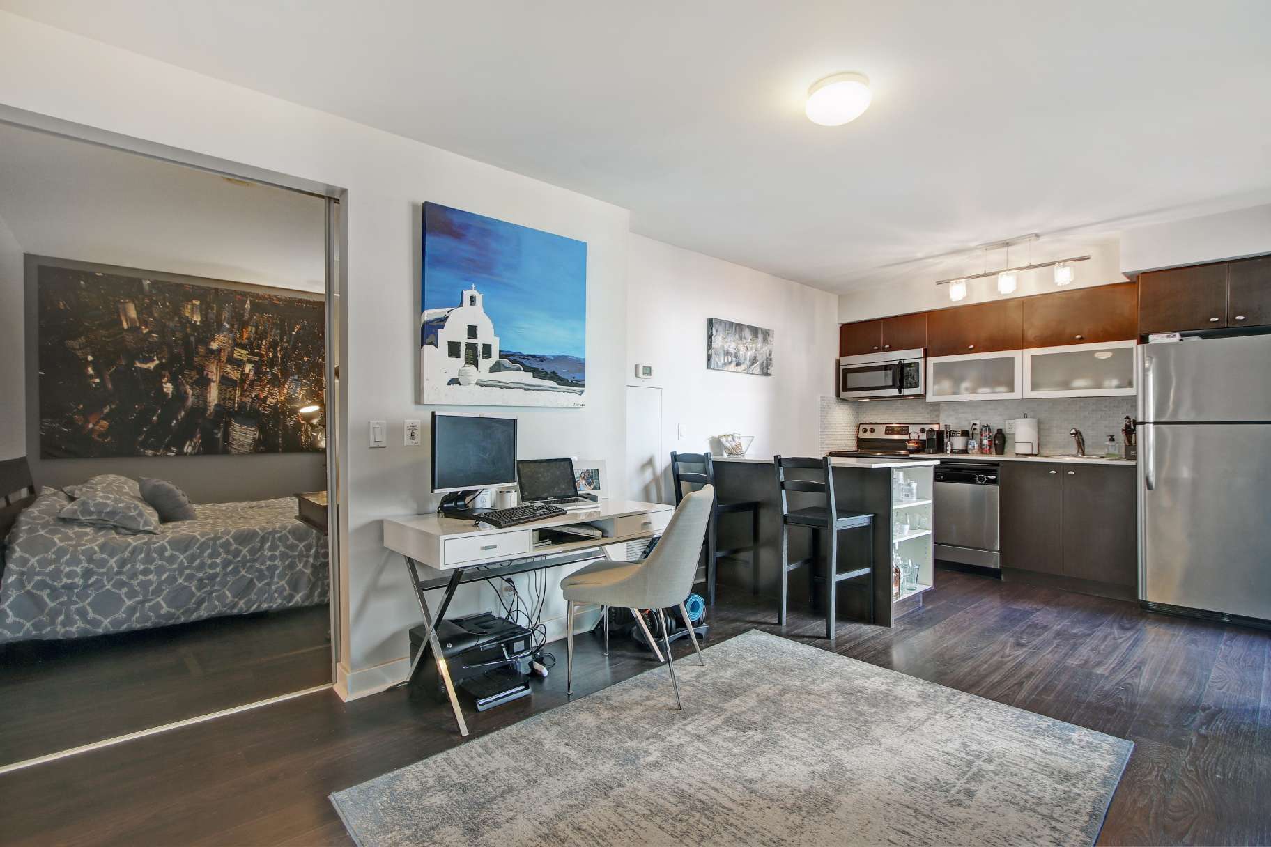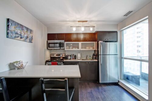 Experience the ultimate urban lifestyle in this spacious 1-bedroom condo at Vibe Condos, perfectly nestled in the heart of Liberty Village! Designed for modern living, this stunning suite features an open-concept layout, a chefs kitchen with sleek stainless steel appliances, a large island, and plenty of space for a dining table – perfect for hosting dinner parties or cozy nights in. Step outside onto your private balcony and take in the views of the lake and the downtown. Living here means you’re just steps away from everything you need: walk to King West via the brand-new pedestrian bridge, hop on transit, hit up GoodLife Fitness, explore trendy shops, cozy cafés, and top-rated restaurants, or catch a game at BMO Field. Plus, with grocery stores, banks, dog parks, and vibrant nightlife all at your doorstep, you’ll love calling this place home!